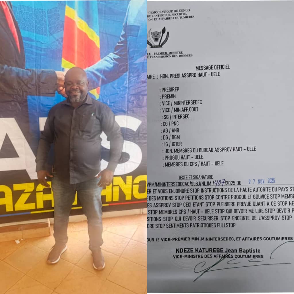 Cette décision ferme, saluée par le Conseiller Spécial Remacle Azimutunde Batungodi, s’inscrit dans la droite ligne de la vision du Chef de l’État, Son Excellence Félix-Antoine Tshisekedi Tshilombo, qui prône la cohésion, la paix et le développement des entités territoriales. « Le moment est à la consolidation des acquis et non à la déstabilisation des institutions », a-t-il souligné, appelant les élus à se conformer aux instructions de la haute hiérarchie.